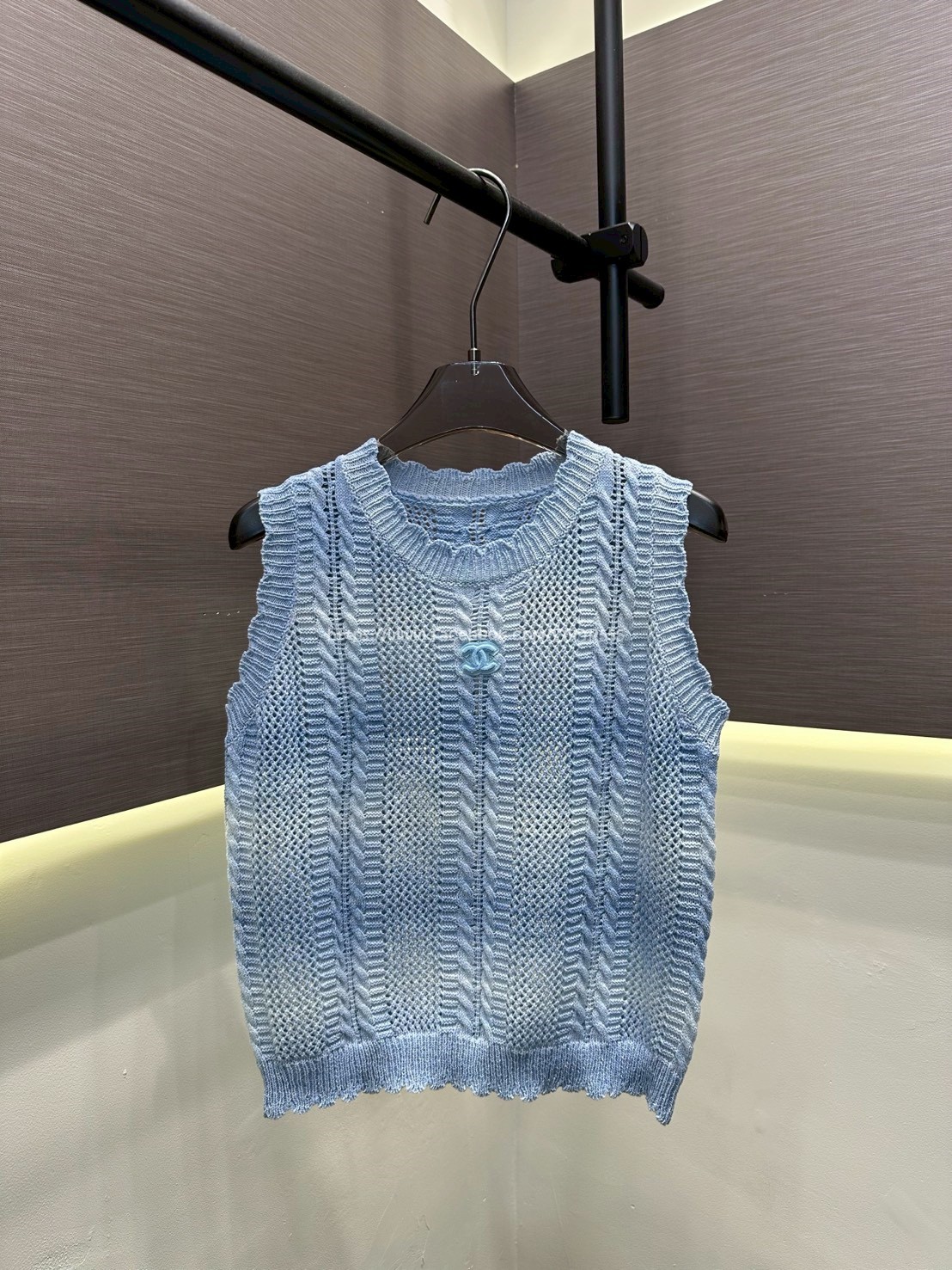 扭繩鏤空針織背心