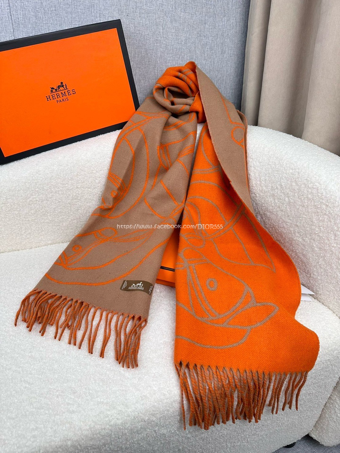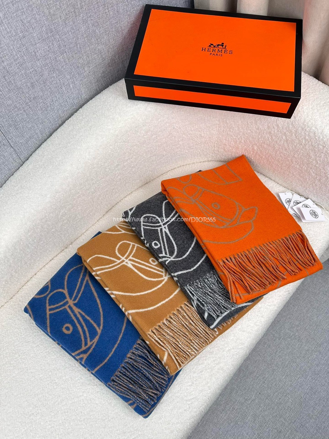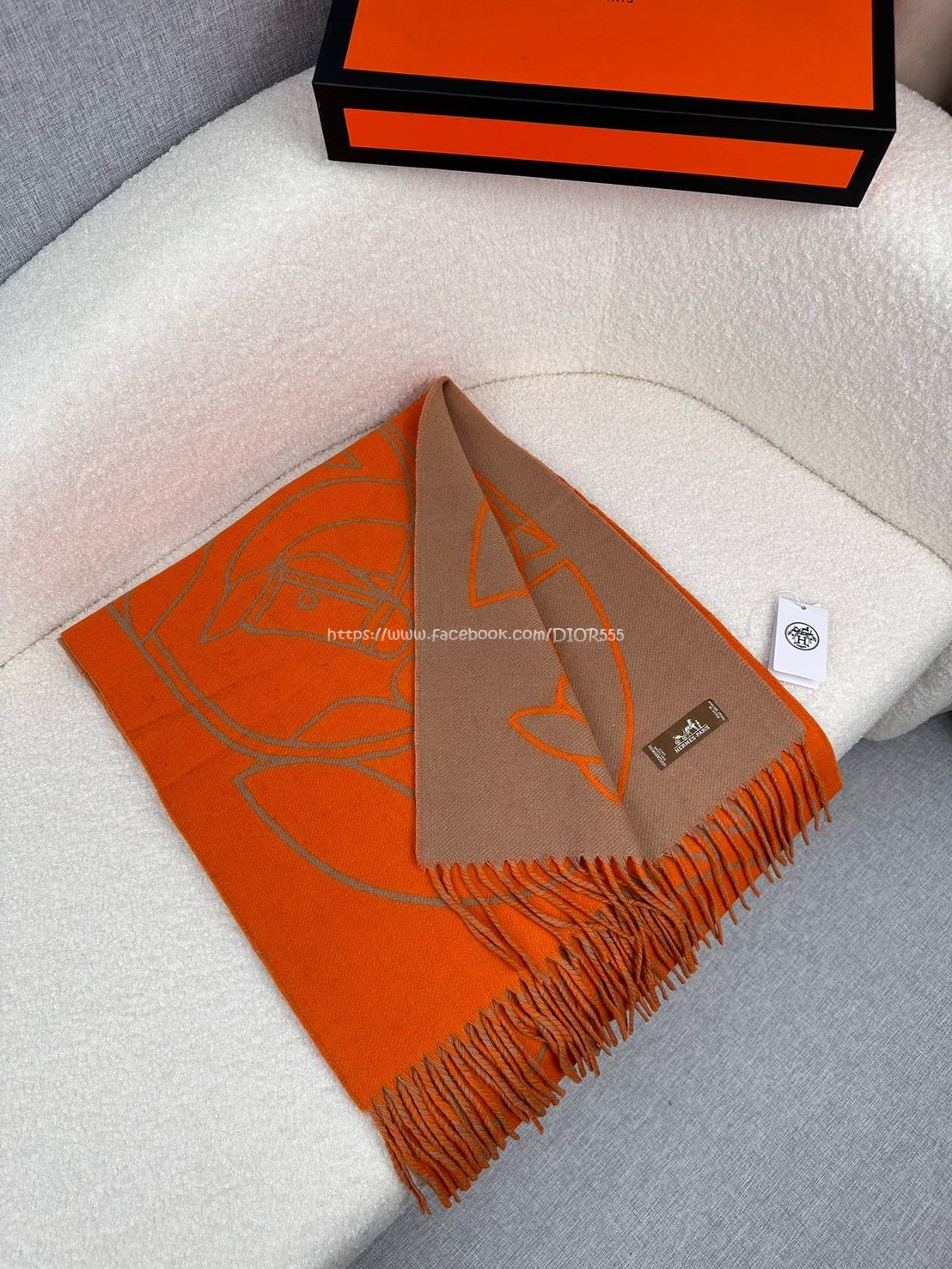 愛馬仕撞色提花編織圍巾