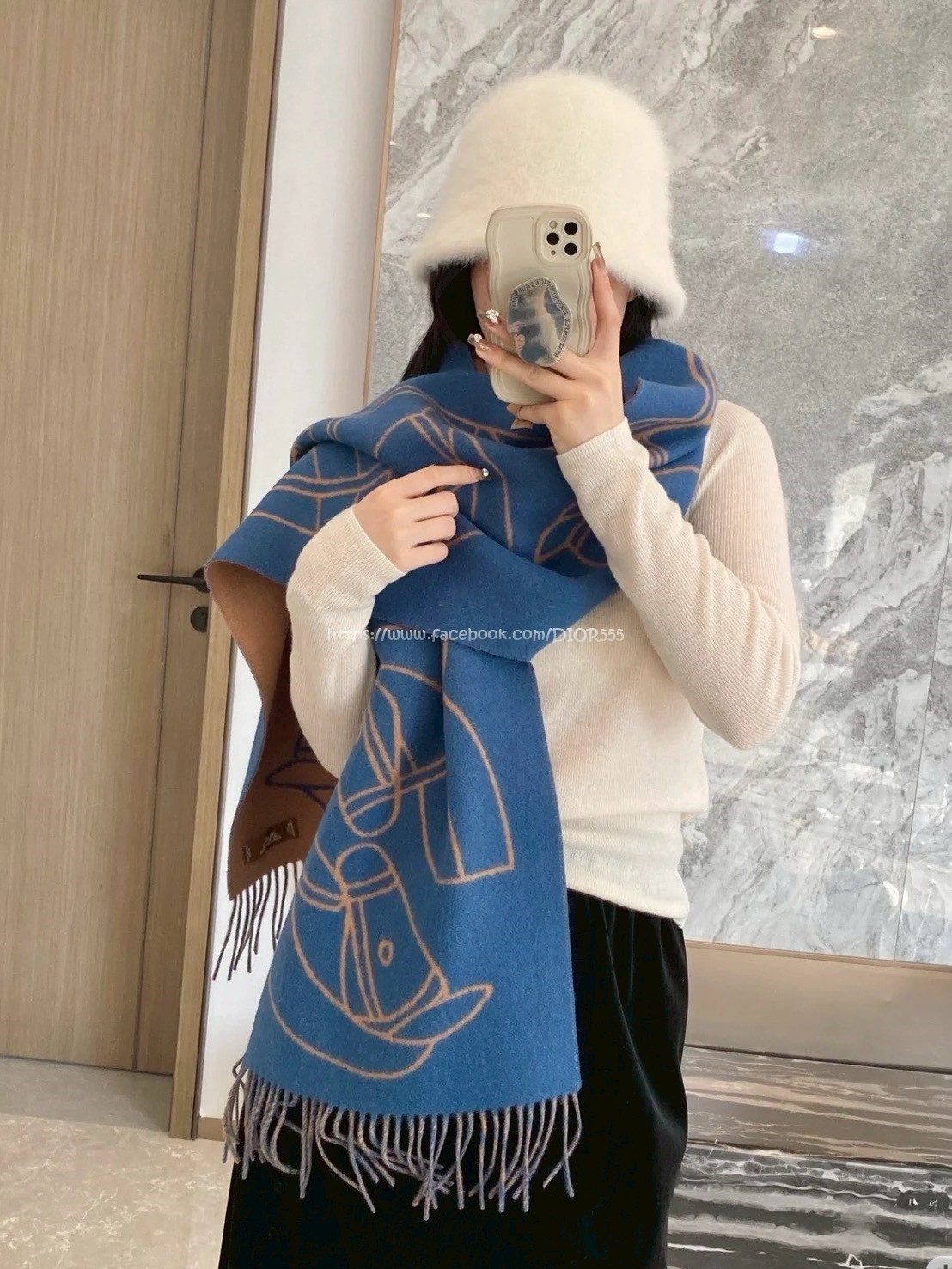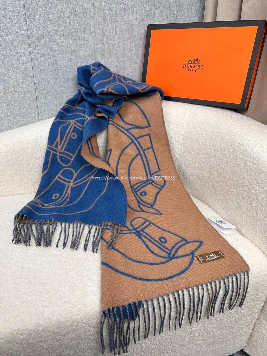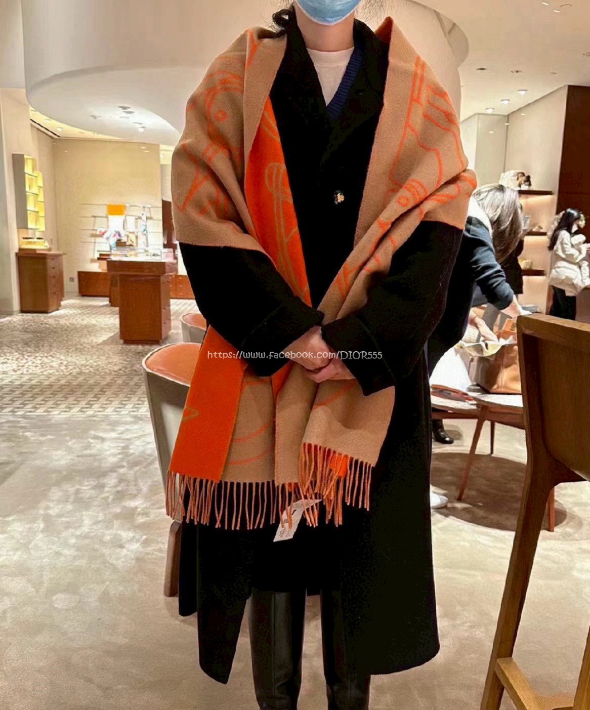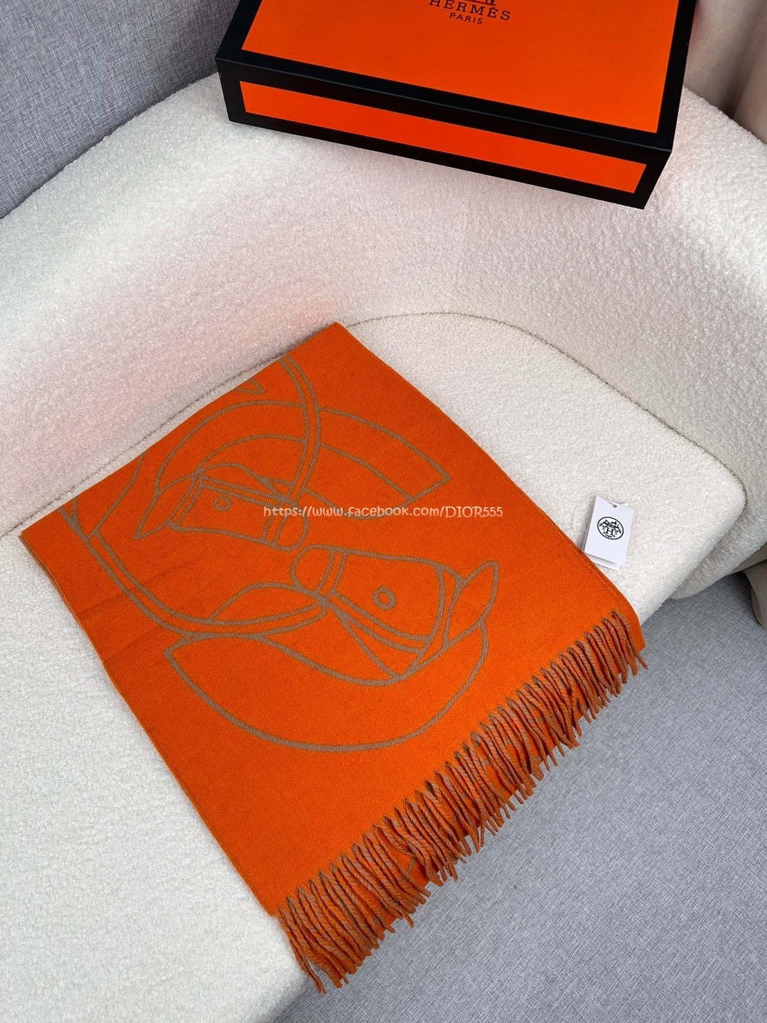 愛馬仕撞色提花編織圍巾