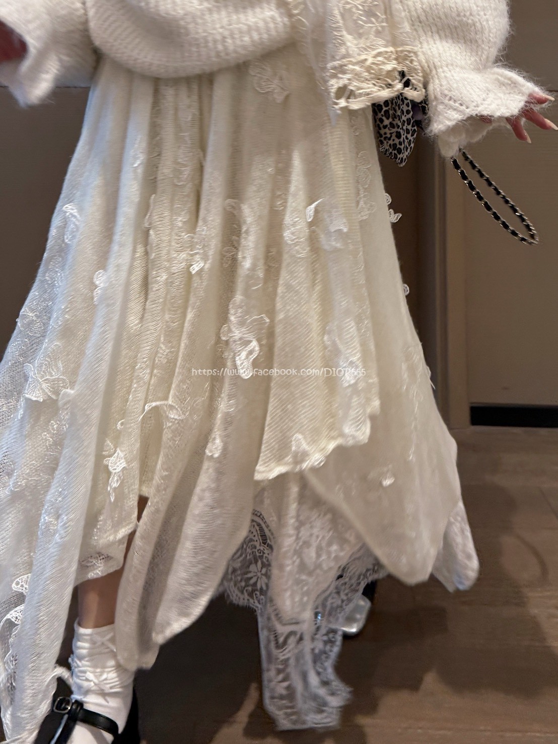 裙子表面的鏤空馬海毛混紡紗線