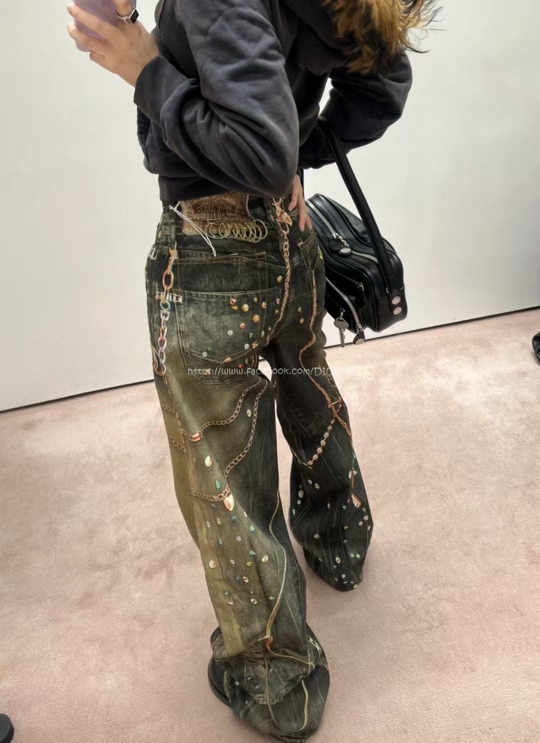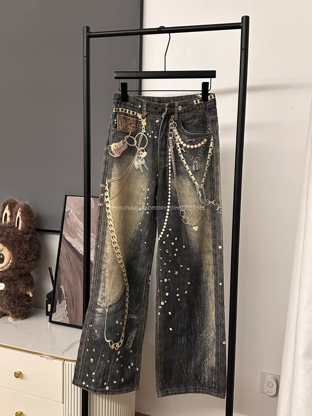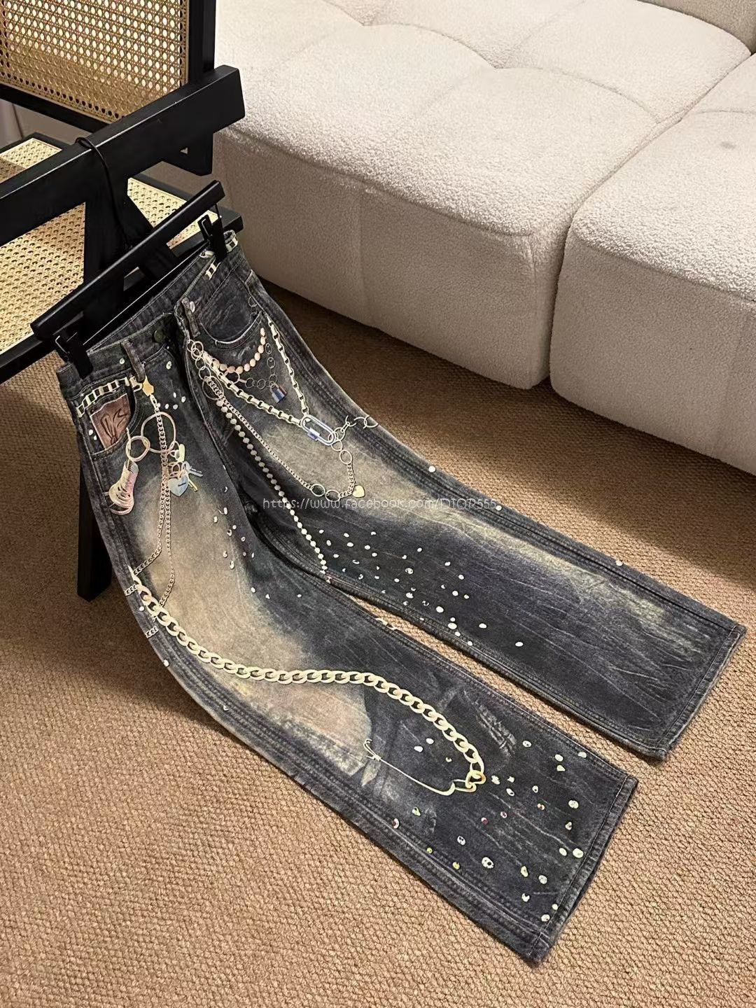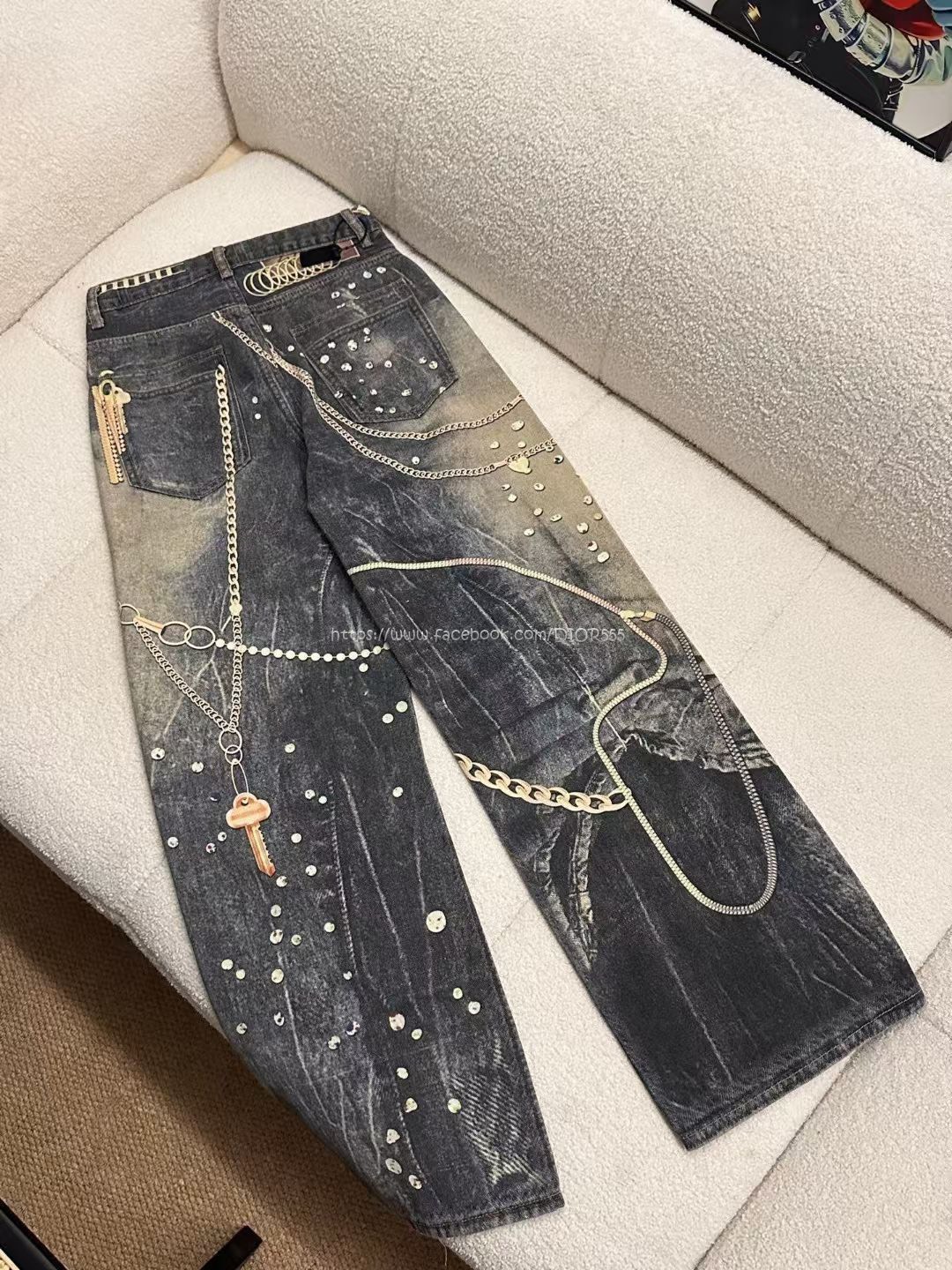 AC黑金鍊條牛仔褲