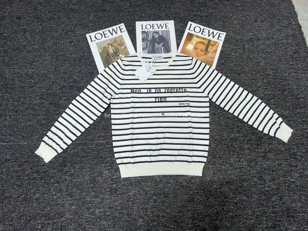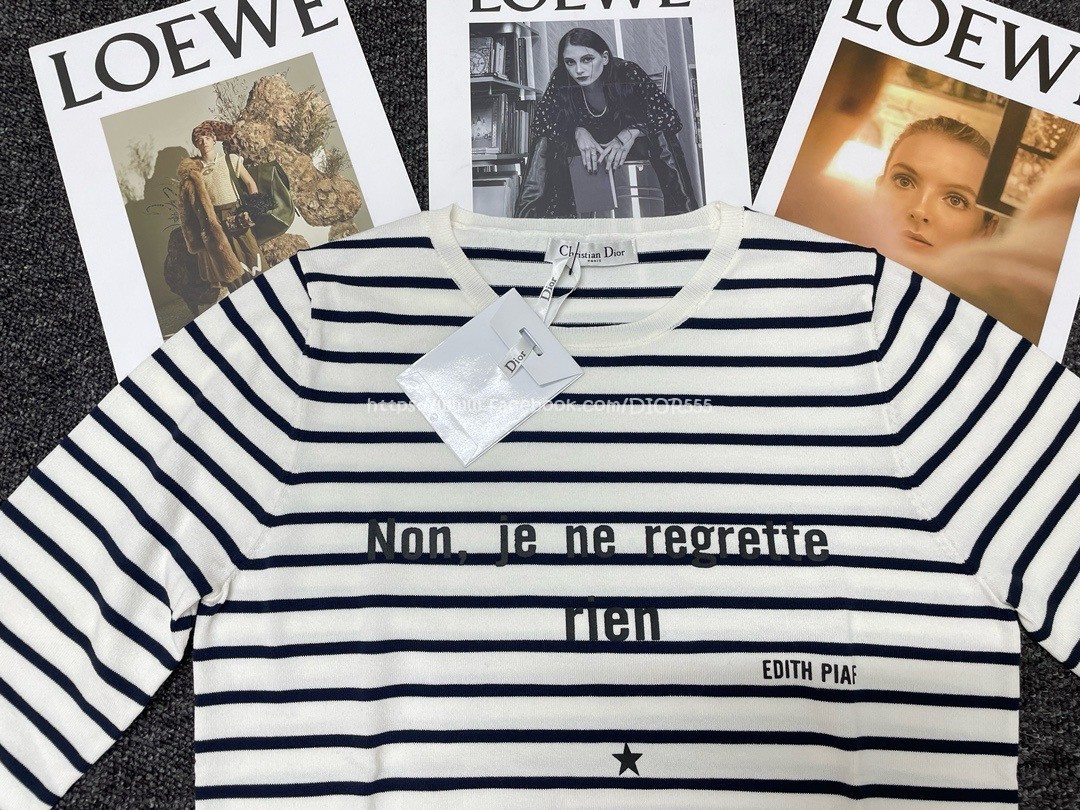 Dior字母條紋針織長袖T