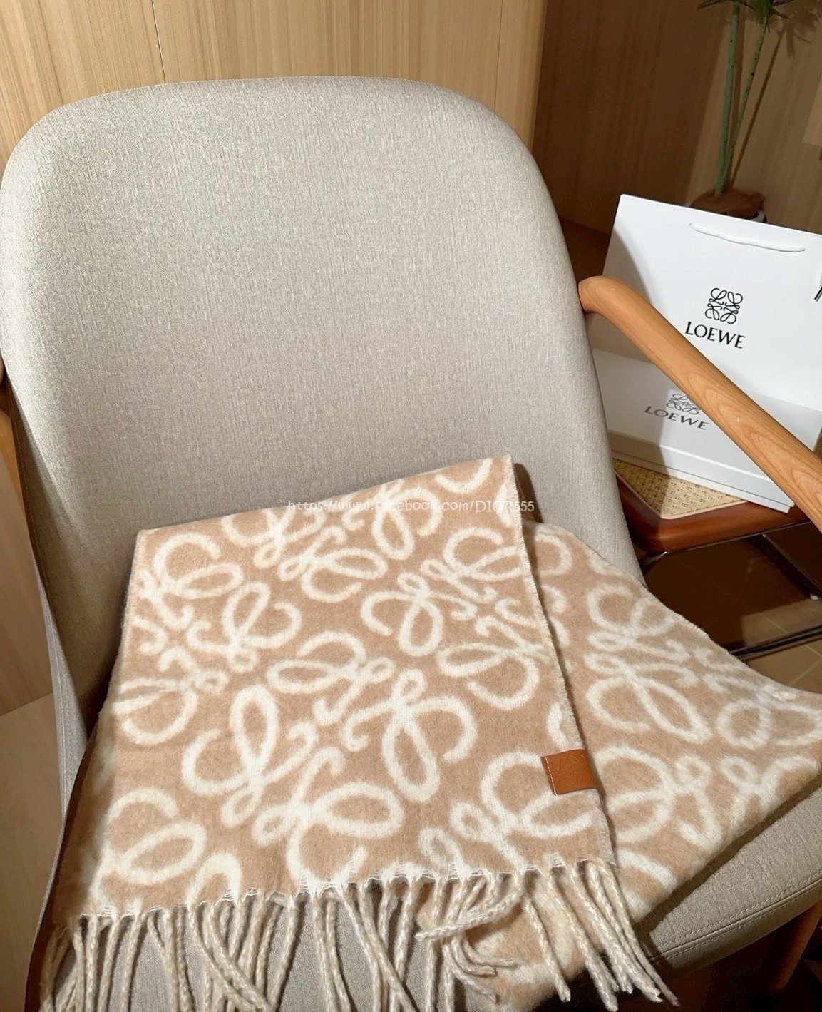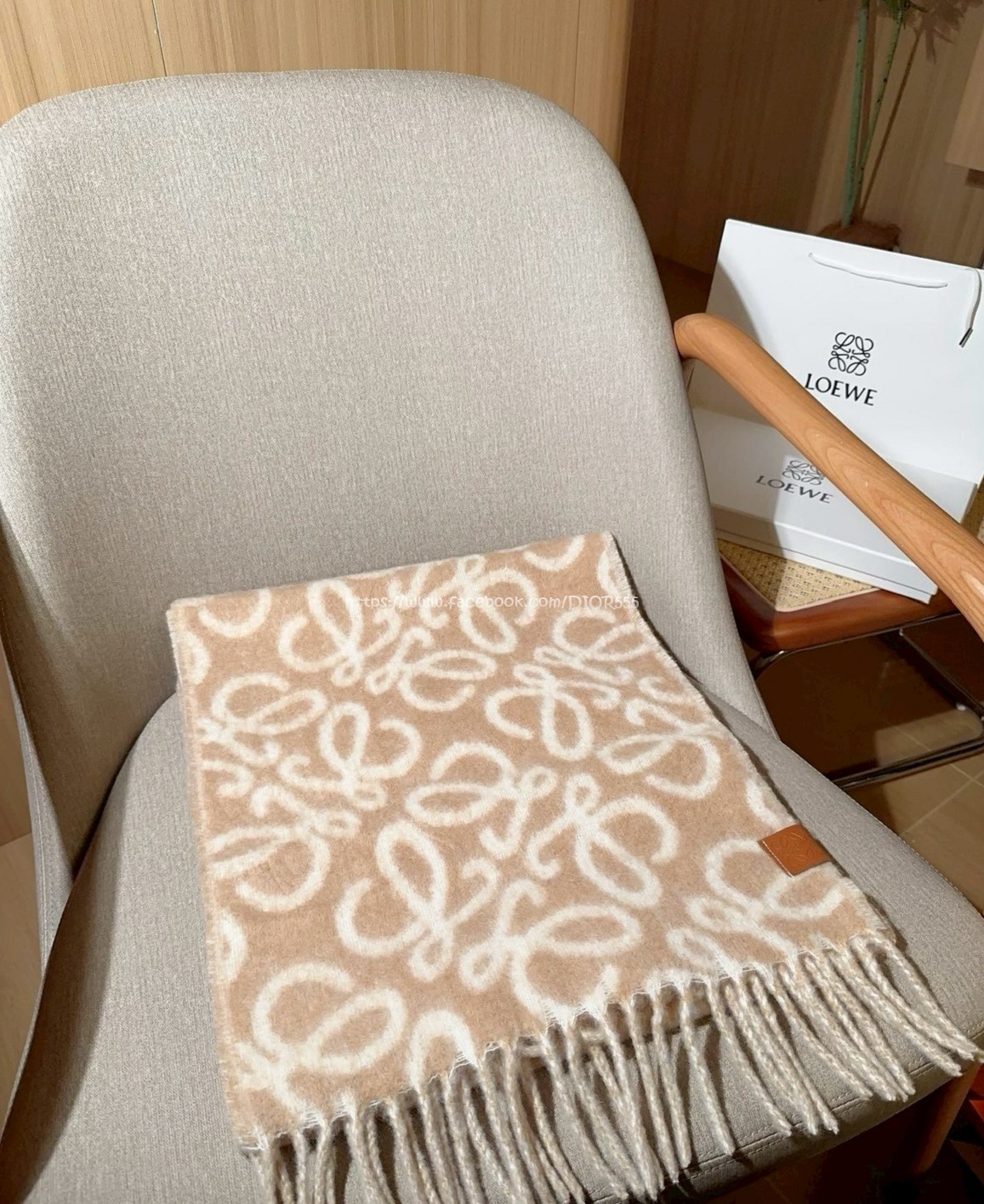 LOEWE圍巾 超美奶茶色