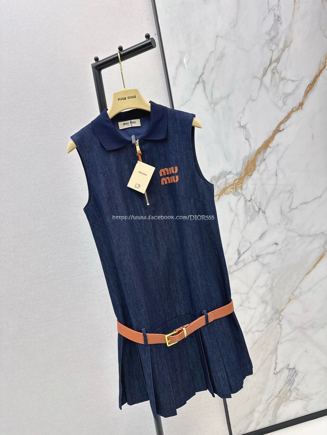 Miu Miu牛仔無袖百褶連身裙