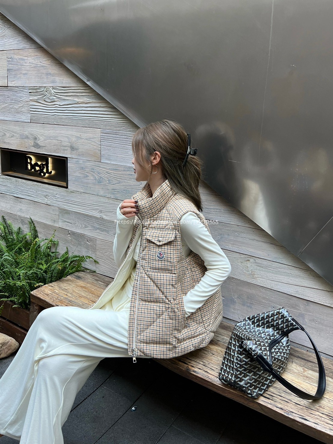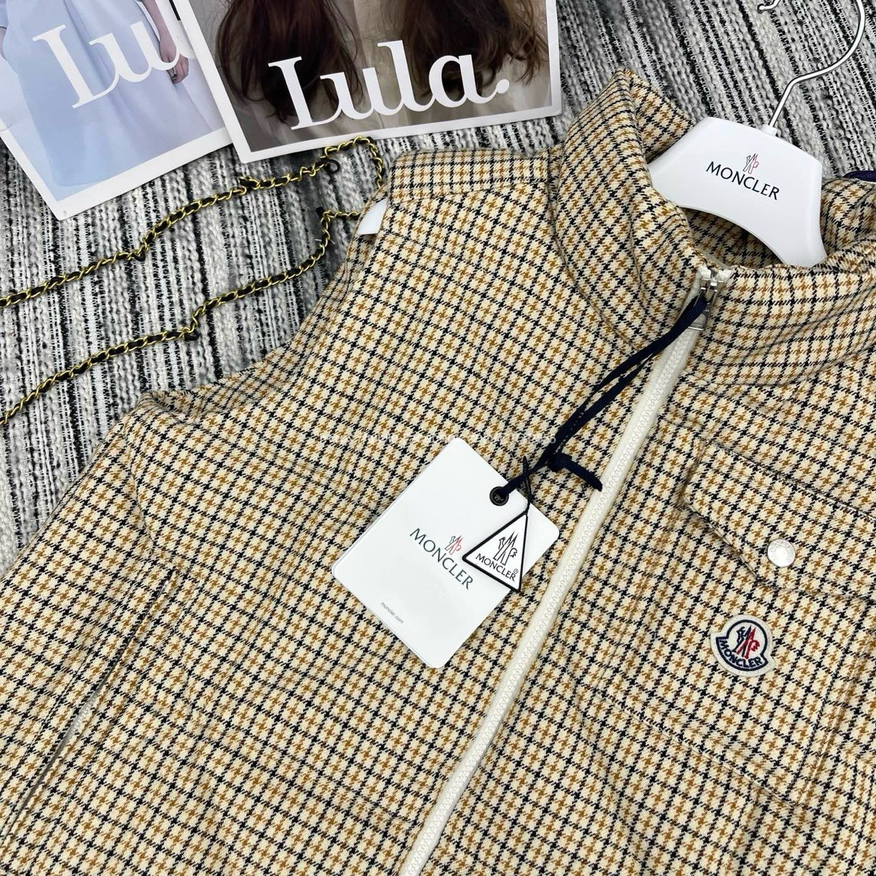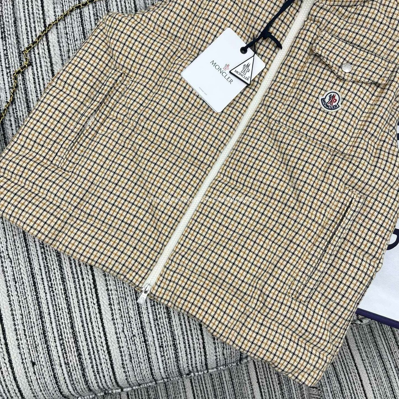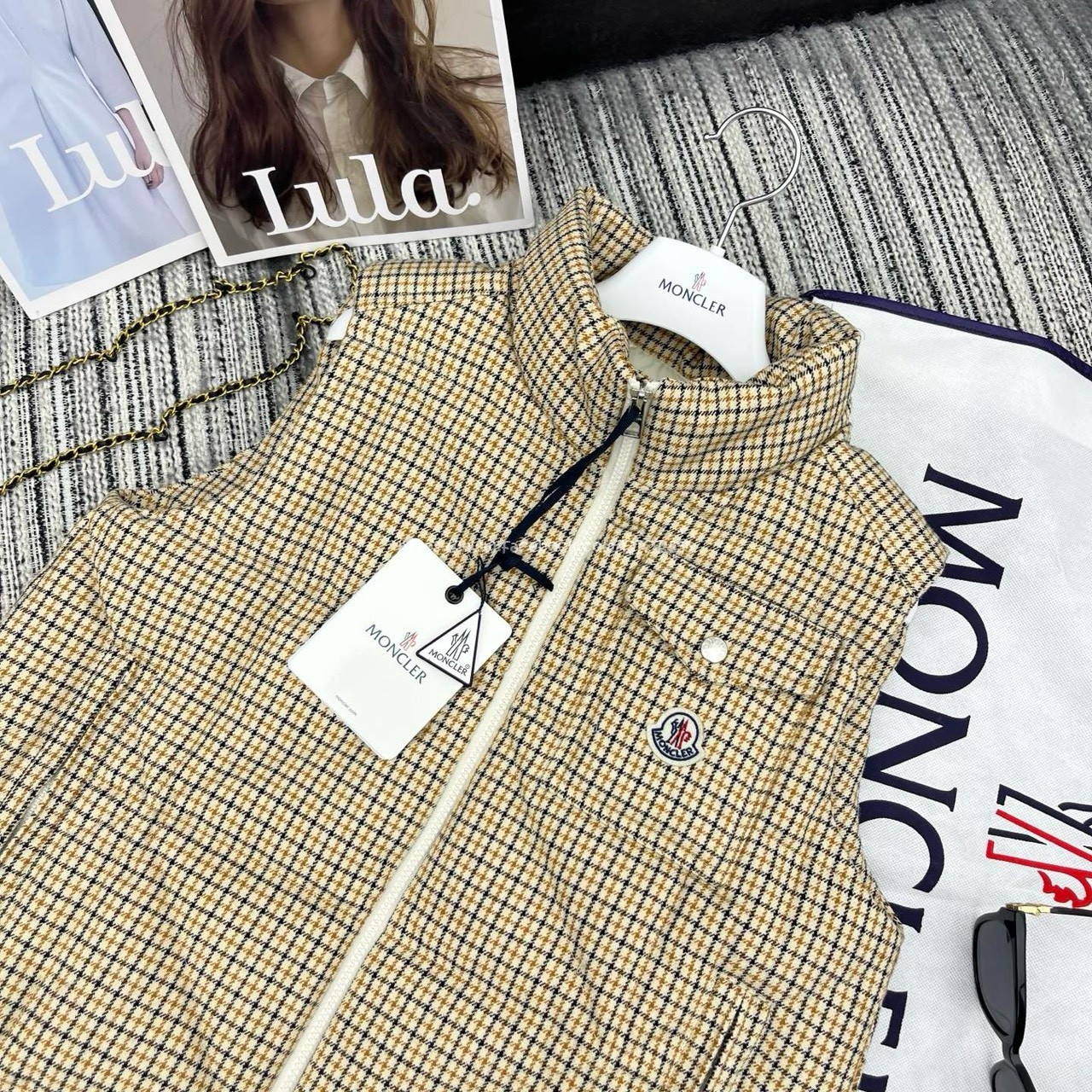 moncler 千鳥格立領羽絨背心